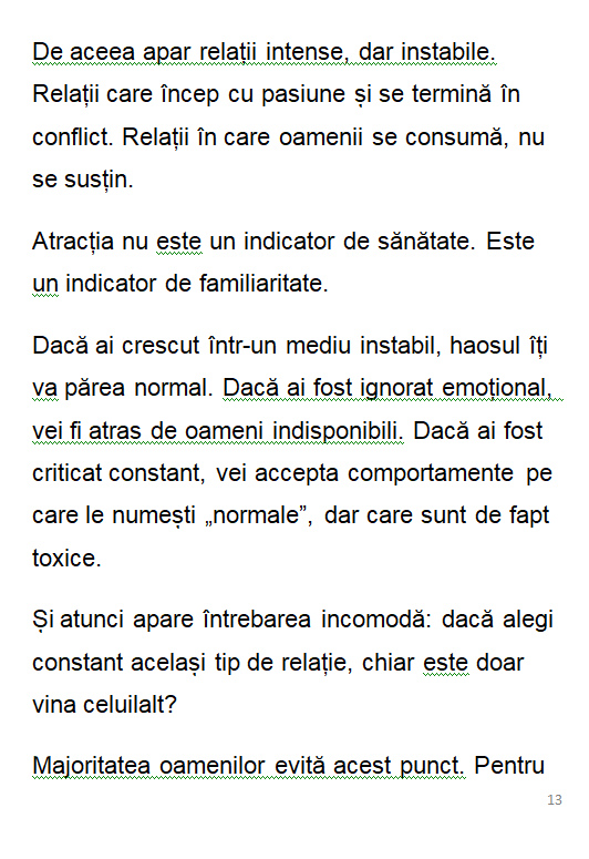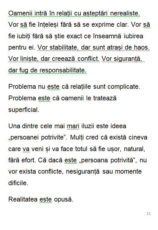 Este pentru cei care vor relatii reale, stabile si fara haos emotional. Pentru cei care sunt dispusi sa isi asume responsabilitatea si sa schimbe lucruri concrete, nu doar sa caute "persoana potrivita".