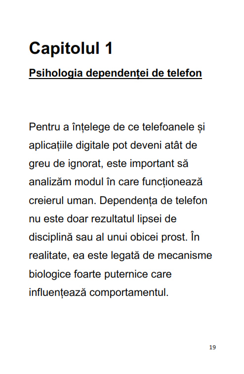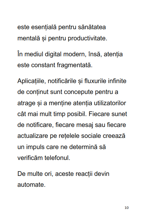 Cartea explica de ce telefonul si platformele sociale sunt concepute pentru a-ti capta atentia si cum acest lucru afecteaza concentrarea, productivitatea si echilibrul mental.
