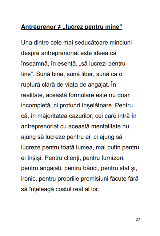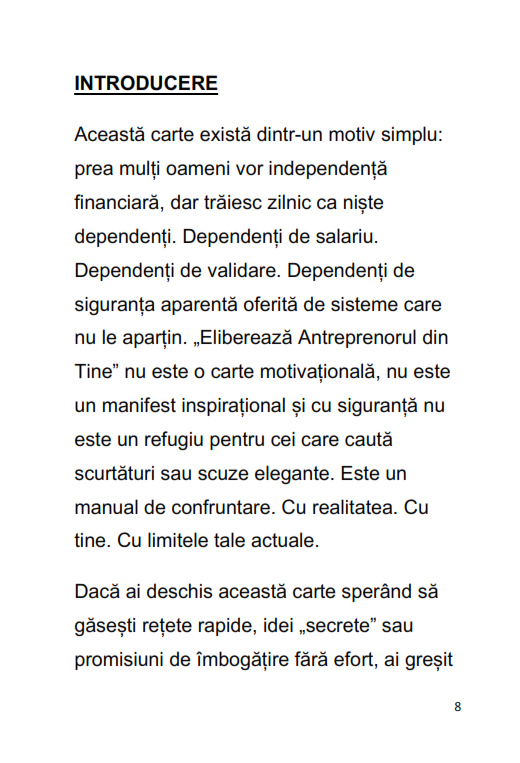 Ebookul "Eliberează antreprenorul din tine" nu este o carte motivațională și nu promite succes rapid. Este o confruntare directă cu realitatea antreprenoriatului: responsabilitate totală, decizii grele și execuție constantă.