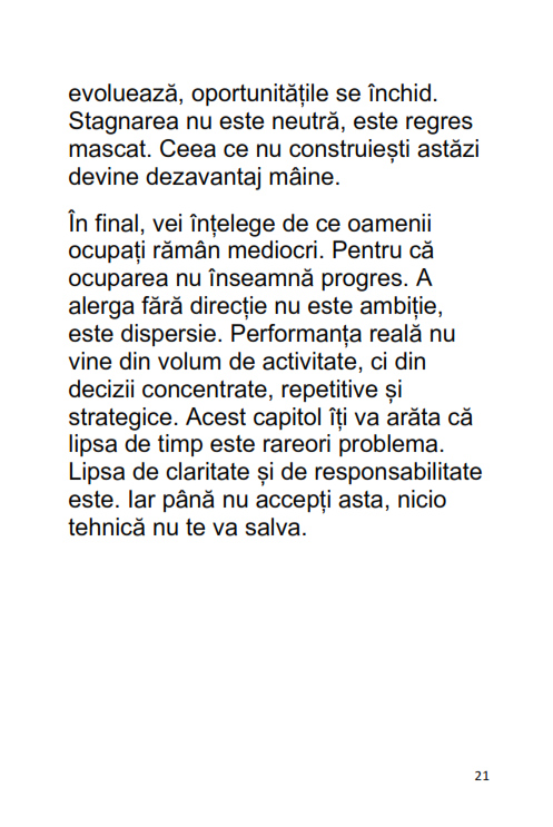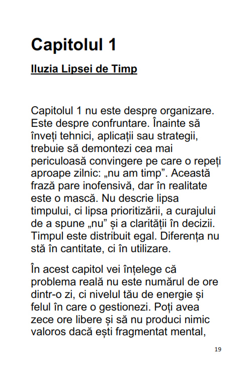 "Fă Timpul să Lucreze pentru Tine" nu este o carte despre a face mai multe lucruri. Este despre a face lucrurile corecte, la momentul potrivit, cu disciplină și claritate.