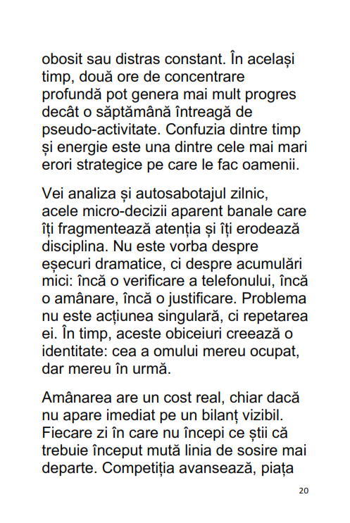 Dacă vrei mai mult control asupra vieții tale, mai multă concentrare și rezultate reale pe termen lung, această carte îți oferă instrumentele necesare pentru a transforma timpul într-un avantaj strategic.