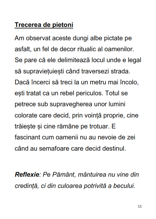 Rezultatul este un ghid neobișnuit despre cum funcționează lumea oamenilor — sau cel puțin despre cum pare ea pentru cineva care nu a crescut în interiorul ei.